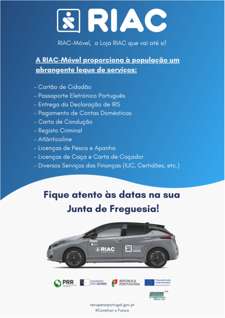 RIAC-MÓVEL na Junta de Freguesia de Fenais da Luz a 4 de dezembro, das 14h00 às 16h00.